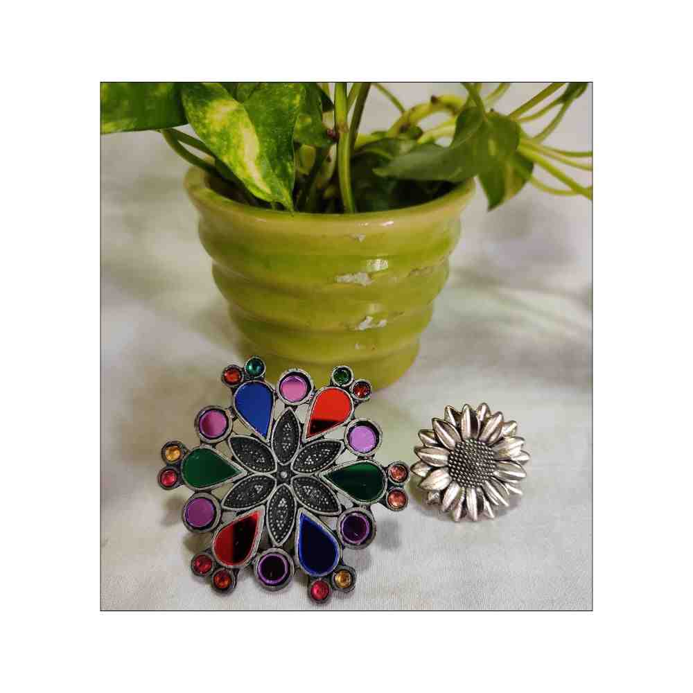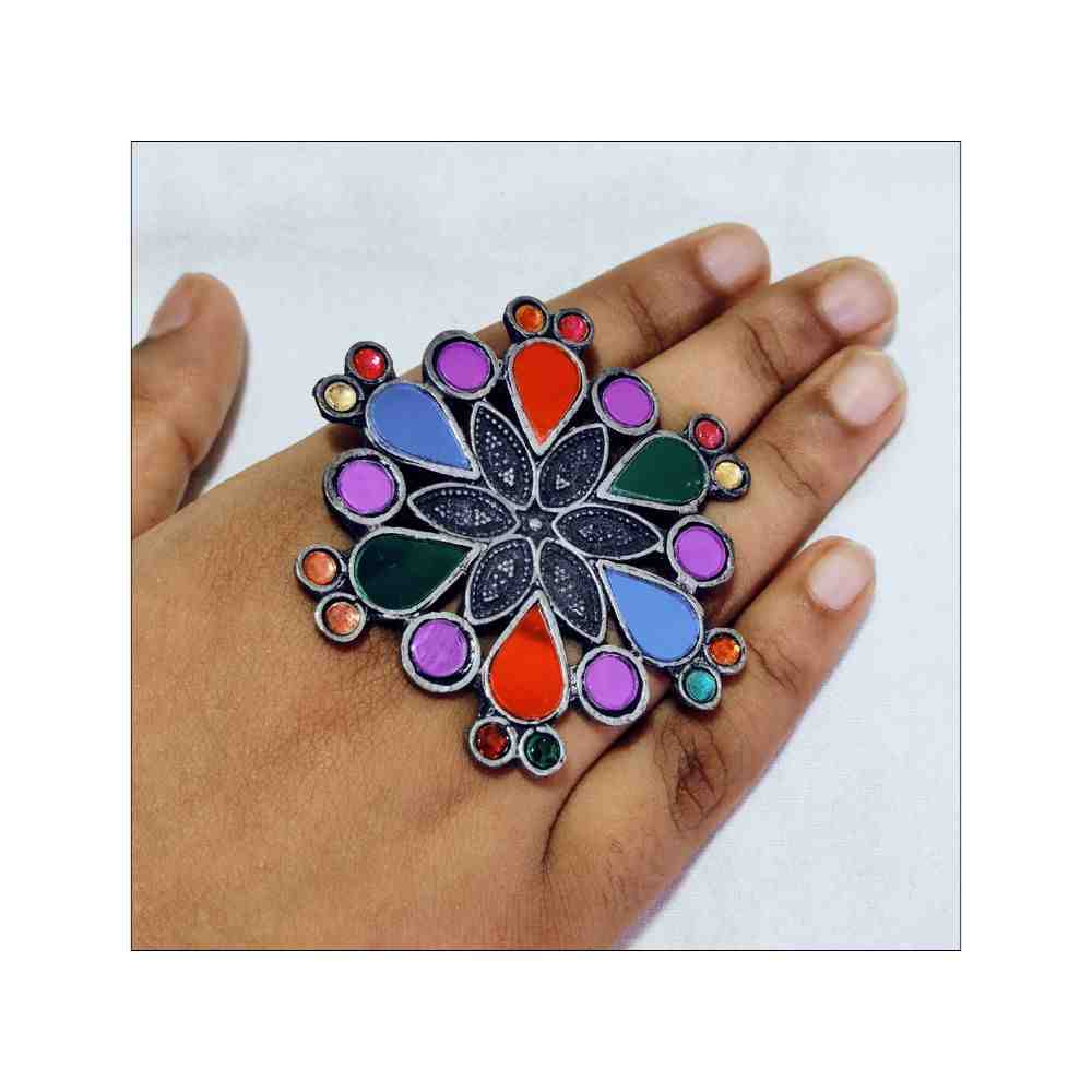 Hearts and Crafts present Afgani style and Oxidized silver adjustable finger ring for women and Girls. Trendy and stylish look which will go with your modern and traditional dresses. This can be one of the choicest gift for your loved ones for all occasions. This products are made of high standard material to suit all type of skin and will not cause any harm. This items doesn’t lose its shine over a long period of time. Use soft dry cotton cloth to clean, do not use harsh chemicals, acid etc.