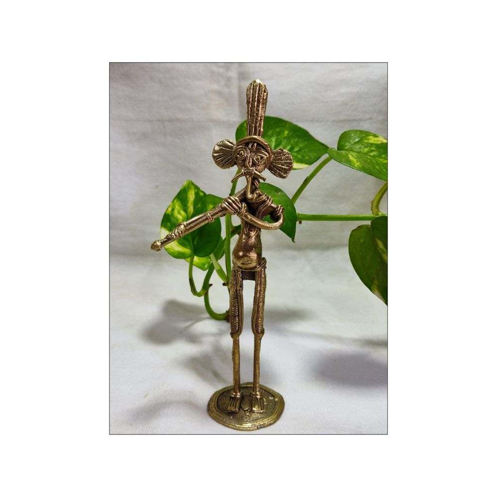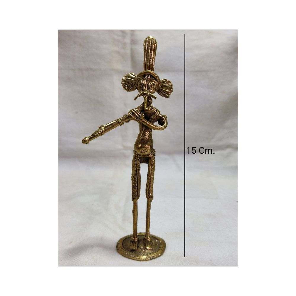Brass (Dokra) figurine of Ganesha playing flute- Height 15 cm