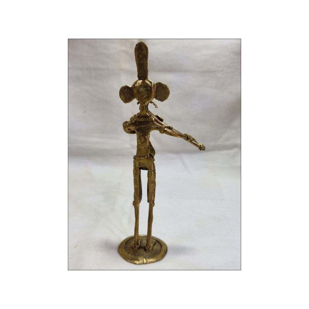 Handmade Brass (Dokra) figurine of Ganesha playing flute from Hearts and Crafts. Height 15 Cm. This unique and ethnic showpiece is entirely handmade by passionate creators of Dokra art form. This showpiece will surely uplift the ambience of your home and office. Dokra is a Metal casting art form of around 4000 years old. This art form is considered to be one of the oldest form of art which is still in use today showcasing India’s rich civilization though is figurine. Brass handicrafts are made to last. This showpiece is a perfect décor for office, living room, study room and also ideal for gifting purpose.
