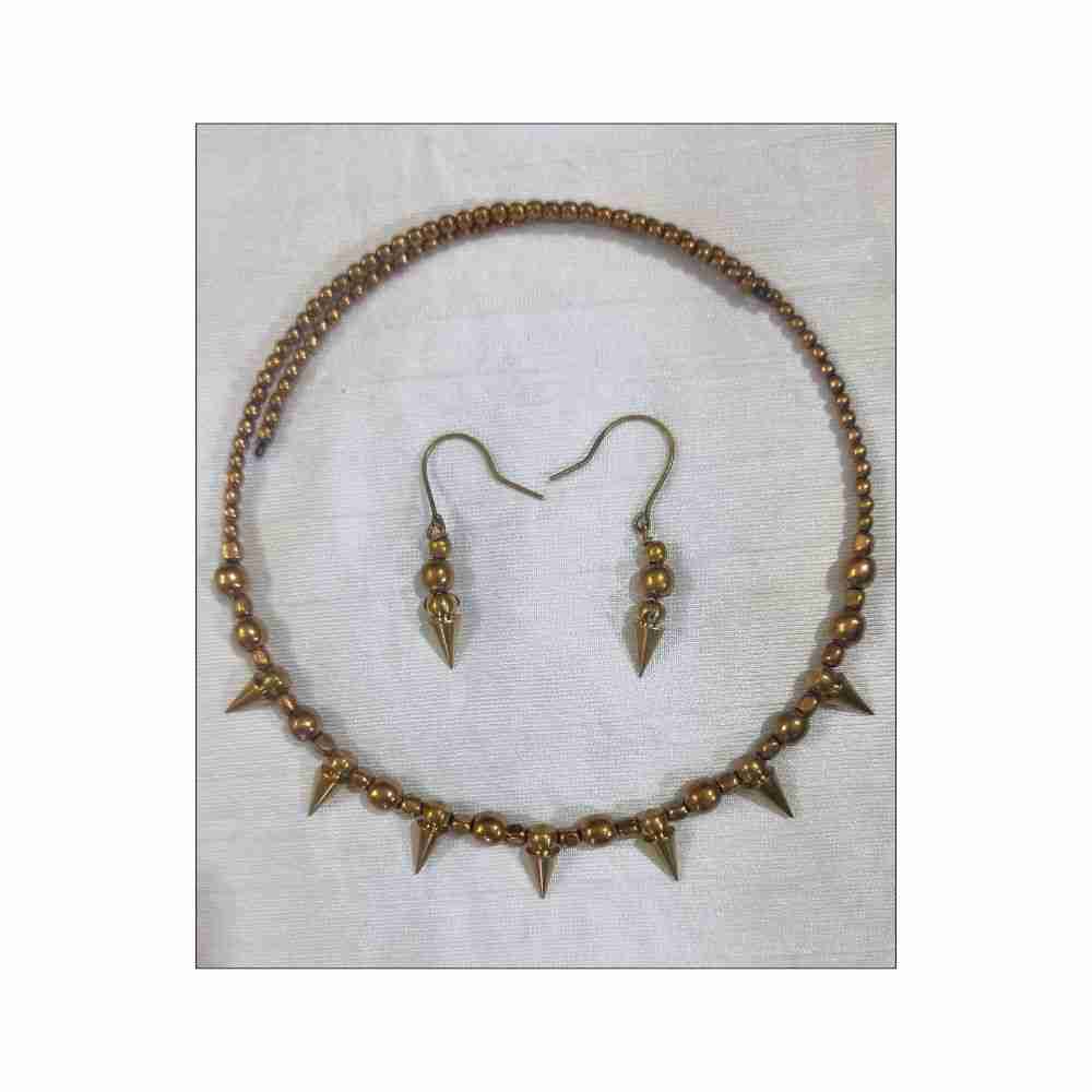 Hearts and Crafts present Brass (Dokra) jewelry set. Auto adjustable neck tarsal with fish hook earrings. Trendy, eye-catchy jewelry for all ages. This can be worn daily and on any special occasion like festival and wedding. This can also be a perfect gift item for your loved ones. Made with premium quality material and will not cause any skin irritation and doesn’t have any sharp edge.