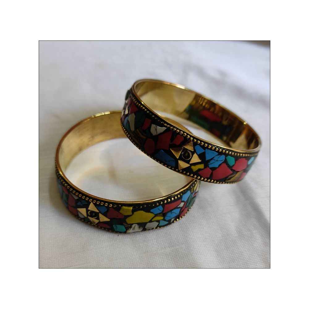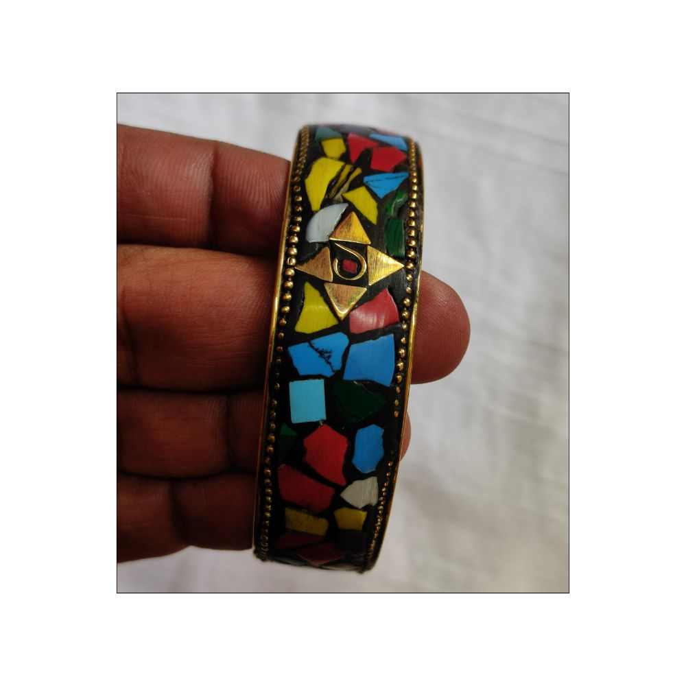 Hearts and Crafts presents Tibetan style brass and stone bangle. Made with premium quality material. This can be worn daily and on special occasion. This can also be a perfect gift item for your loved ones. Durable, elegant and suits all dress code.