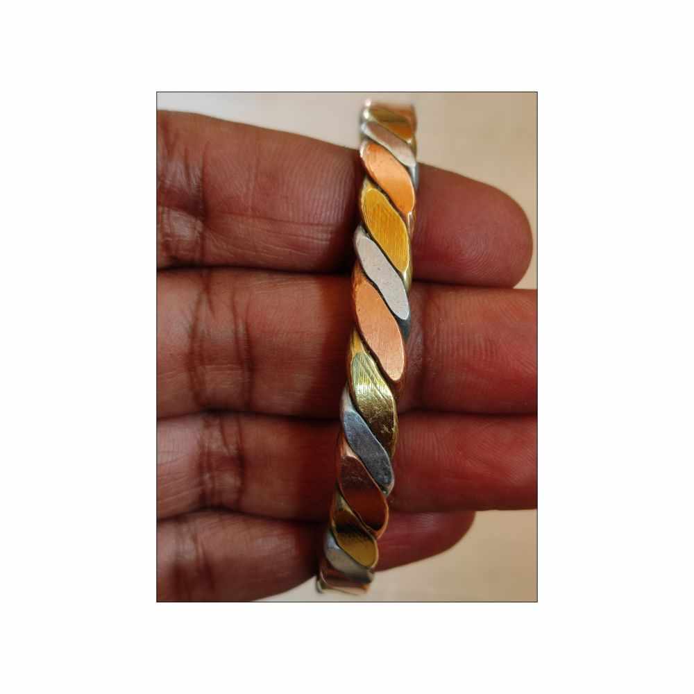 Unisex free size pure dhatu bangle (Kada). Spiral design made with copper brass and Iron. Crafted with premium quality metal and designed to withstand daily wear without any loss of shine. Comfortable free fit for both for both men and women. This could be a perfect gift item for your loved ones.